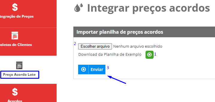 - Clique na página Preço acordo lote;