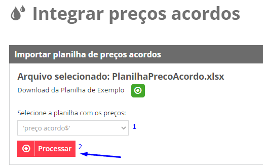 - No botão verde a planilha de exemplo que deve ser usada;