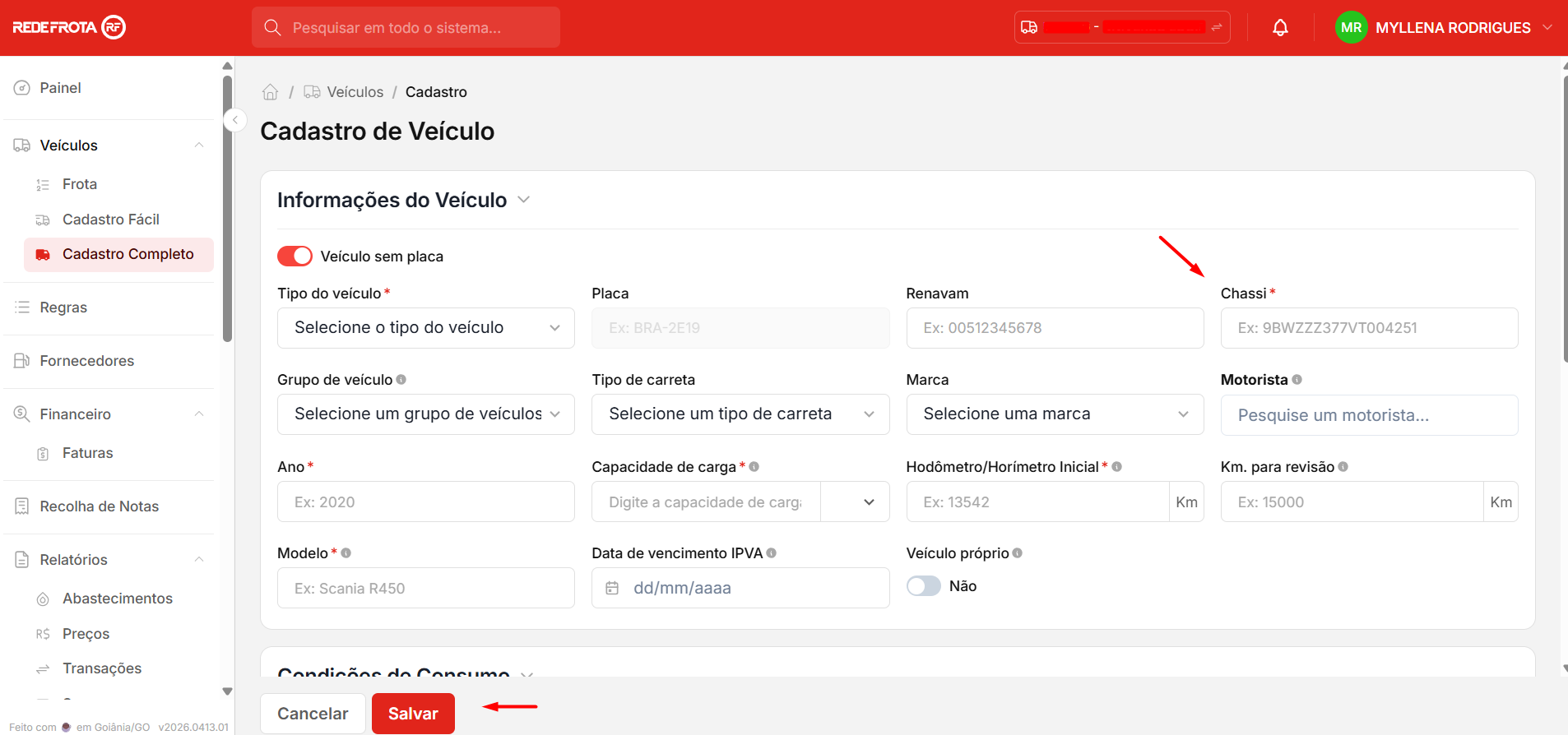 š” O chassi deve ser informado corretamente, pois serĆ” a identificação principal do veĆculo.